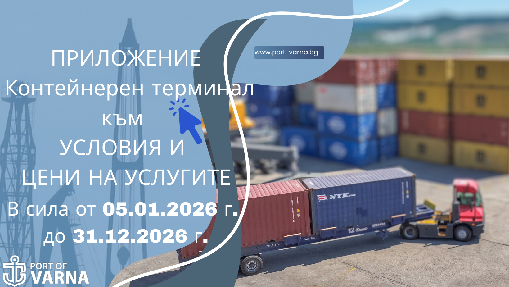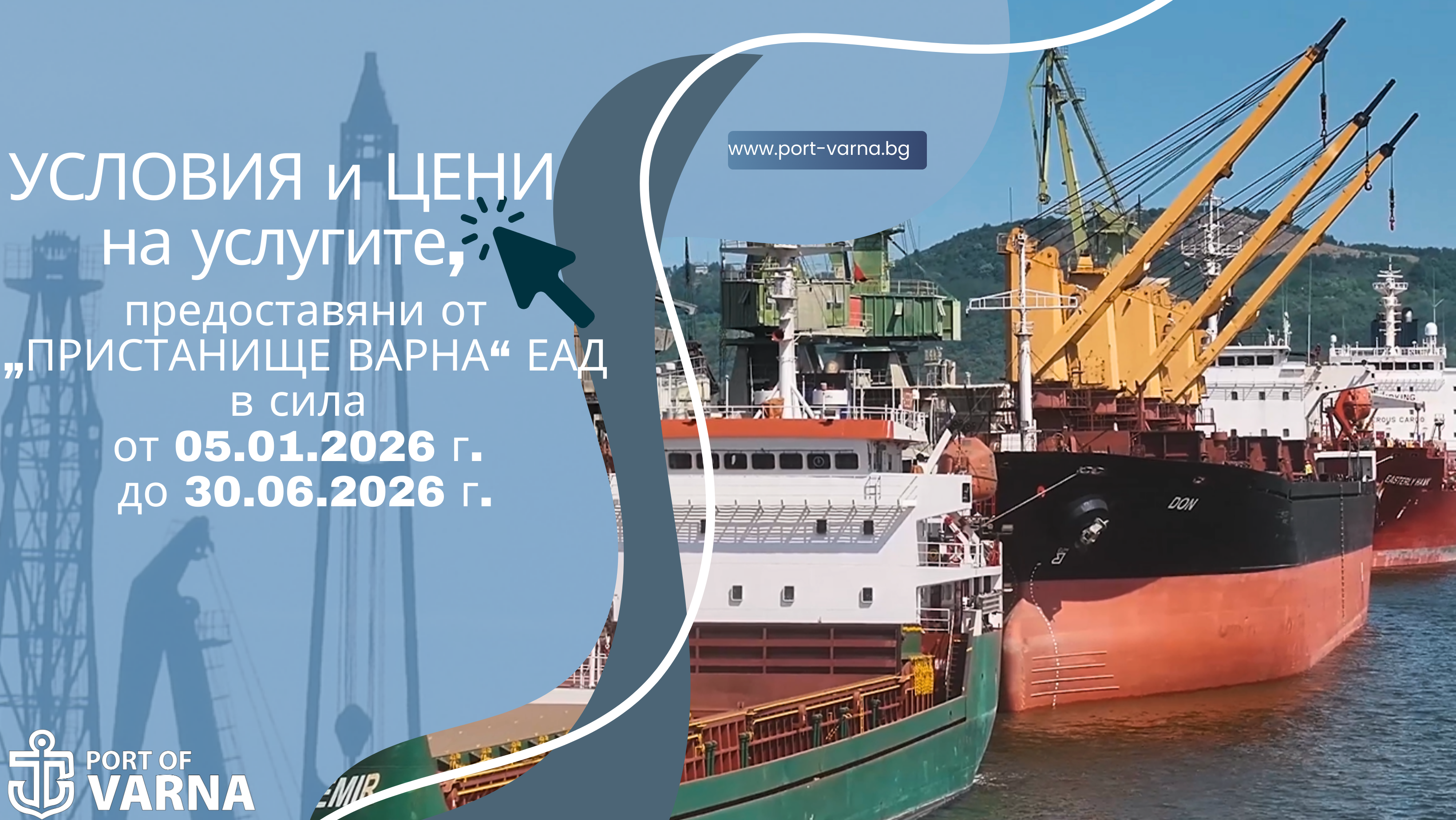 Информация за всички видове услуги предлагани от „Пристанище Варна“ ЕАД може да получите от горепосочения хиперлинк „Условия и цени на услугите на „Пристанище Варна“ ЕАД“