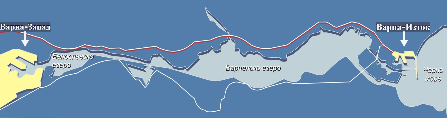 Използвайки крайезерния околовръстен път камионите от пристанище Варна-Изток бързо (10 мин.) могат да достигнат до други важни пътни артерии - автомагистрала Хемус (до София) и шосе Е-70 (Варна-Русе).